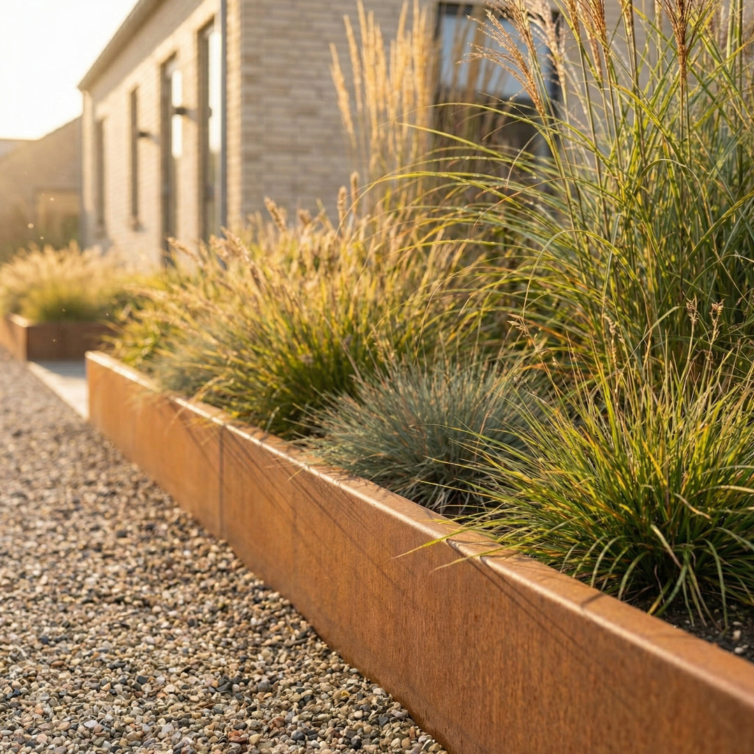 Unsere Metall Beeteinfassungen bieten zahlreiche Vorteile. Sie sind äußerst langlebig und widerstandsfähig gegen Rost, Verwitterung und mechanische Beschädigungen. Im Gegensatz zu Holz oder Kunststoff, die mit der Zeit verrotten oder brechen können, gewährleistet Metall eine langfristige Investition mit minimalem Wartungsaufwand. Zudem ermöglicht das Material eine Vielzahl von Formen und Oberflächenbehandlungen, sodass es leicht an jeden Stil und jede Vorliebe angepasst werden kann. Die metallischen Elemente fügen sich nahtlos in die natürliche Umgebung ein und können sowohl in modernen als auch in traditionellen Gartendesigns verwendet werden.